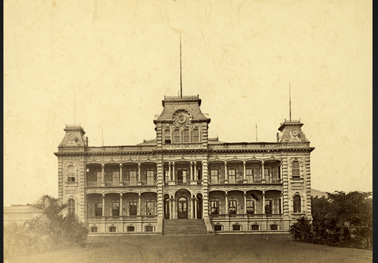 Iolani Palace, representative of a thriving monarchy in the Kingdom of Hawaii during the 19th century, prior to the overthrow of Queen Liliuokalani — composer, author and Hawaii’s last reigning monarch.